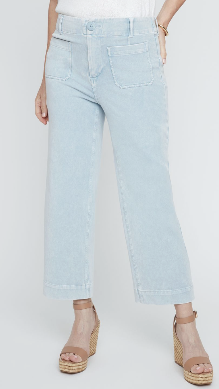 A modern essential with a relaxed, polished feel, the Crop Two-Pocket Front Pant in Chambray offers effortless style and everyday comfort. Crafted from soft, lightweight chambray, these cropped pants feature a flattering high-rise fit and wide-leg silhouette that moves with ease. The front patch pockets add a casual, utility-inspired touch, while the clean lines keep the look refined.