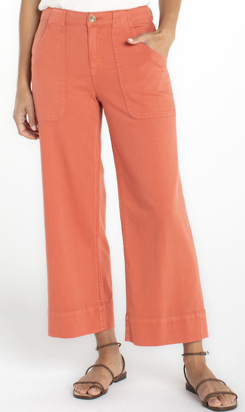 A modern essential with a utilitarian twist, the Stride Cargo Wide Leg Crop in Red Clay blends comfort, structure, and standout color. Designed with a flattering mid-rise and a 26-inch inseam, these cropped wide-leg pants create a relaxed yet refined silhouette that moves easily from weekday to weekend.