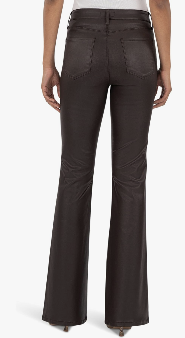 The KUT from the Kloth™ Ana High-Rise Fab Ab Flare-Baby Dn All Over is reminiscent of a popular 70s fashion style. It is a high-rise and has a slim fit through the legs. It kicks just below the knee to create the perfect flared silhouette. Fits great on a taller figure. Pair with a cute pair of sneakers for an on-trend look or dress up for a night out!
