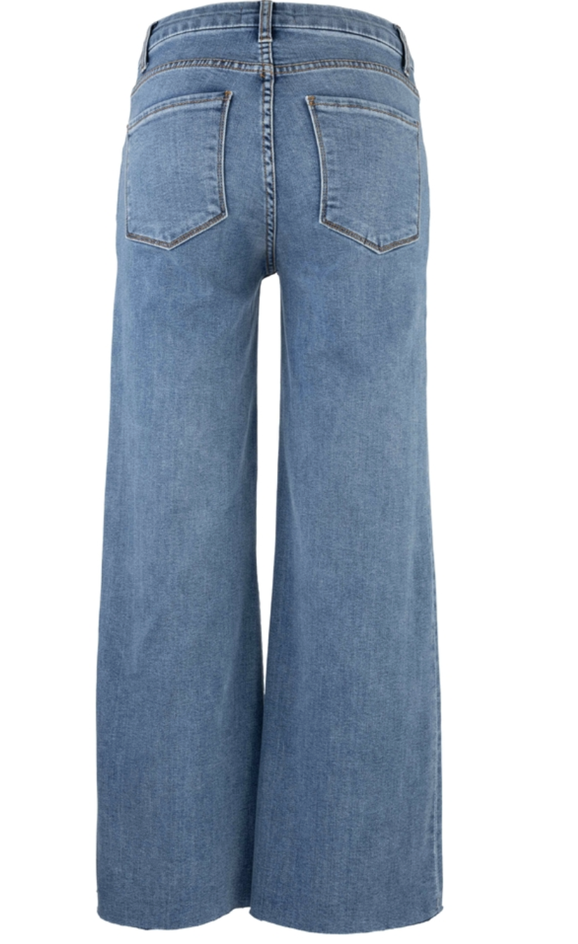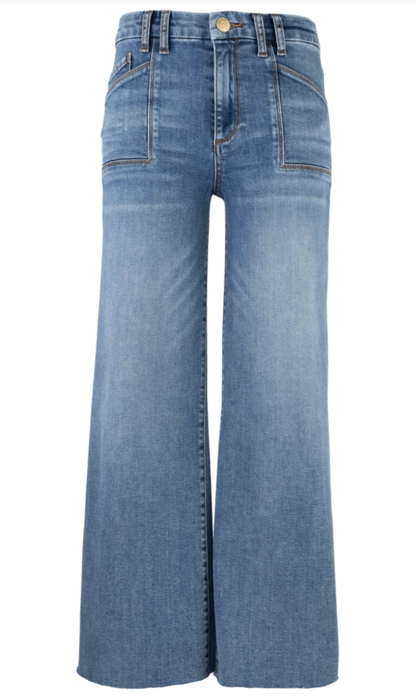 The Meg high-rise wide-leg jeans offer a modern take on classic denim. Designed with a flattering high waist, front patch pockets, and a soft vintage wash, they deliver effortless style and comfort. Perfect for pairing with fitted tops or tucked-in blouses for a balanced, polished look.