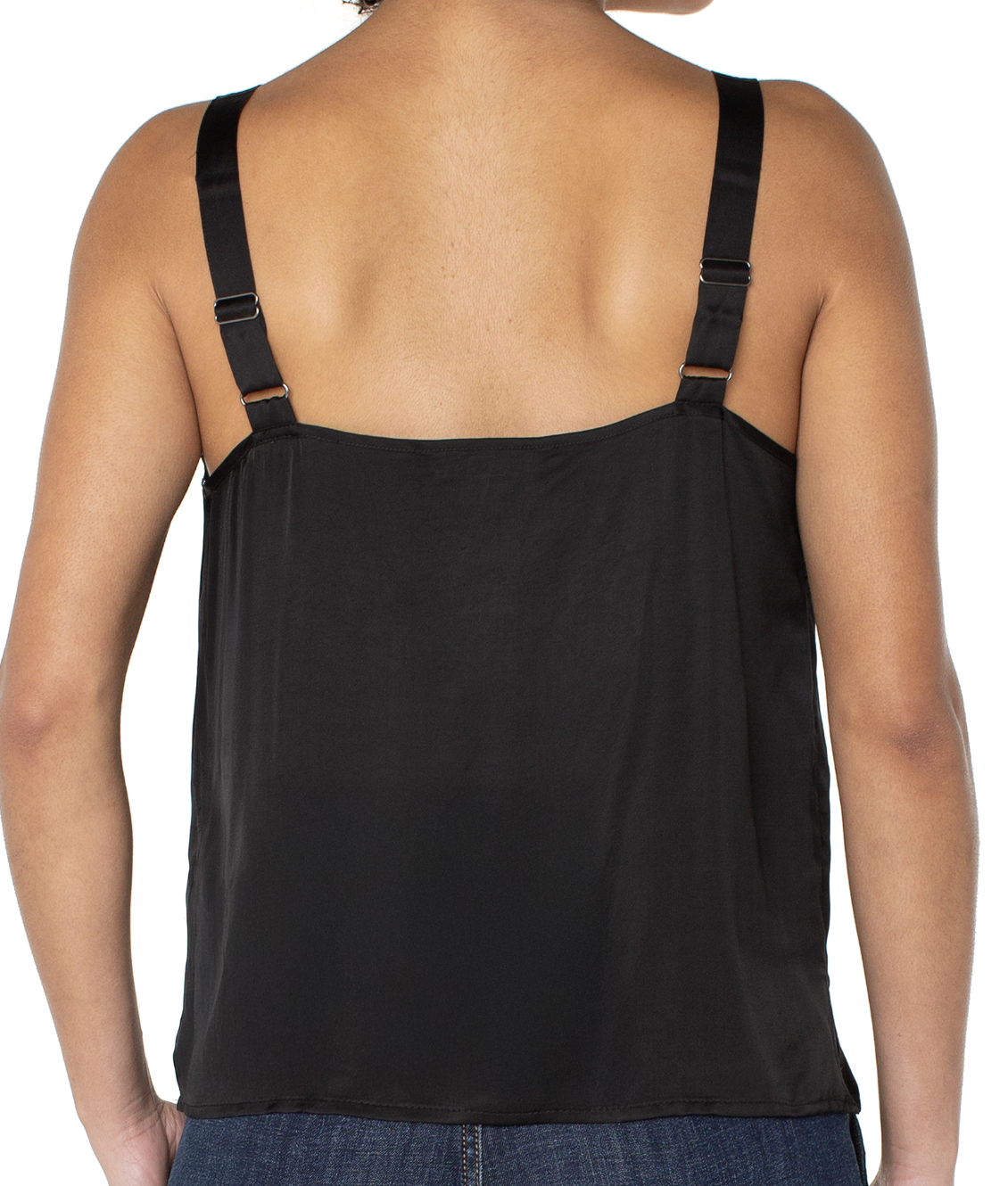 A chic layering essential, this adjustable tank features delicate lace trim along the neckline for a touch of elegance. Designed with adjustable straps for a customized fit, its silky finish makes it perfect for dressing up or wearing casually.