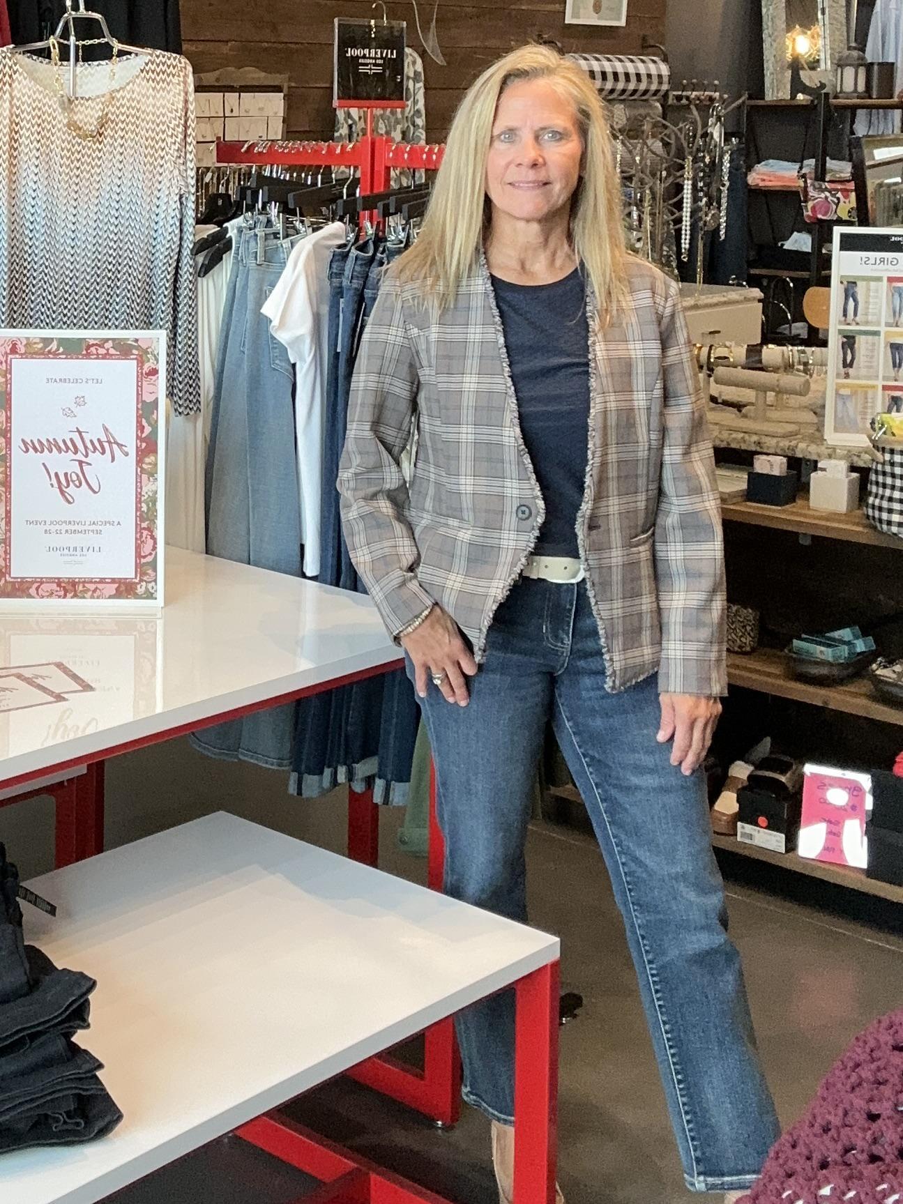 Collarless, fitted blazer featuring a modern plaid pattern and subtle frayed edges for a touch of effortless sophistication. Tailored silhouette offers a flattering fit, while the raw hem detailing adds a contemporary twist to this versatile layering piece. Perfect for elevating both casual and business-casual looks.