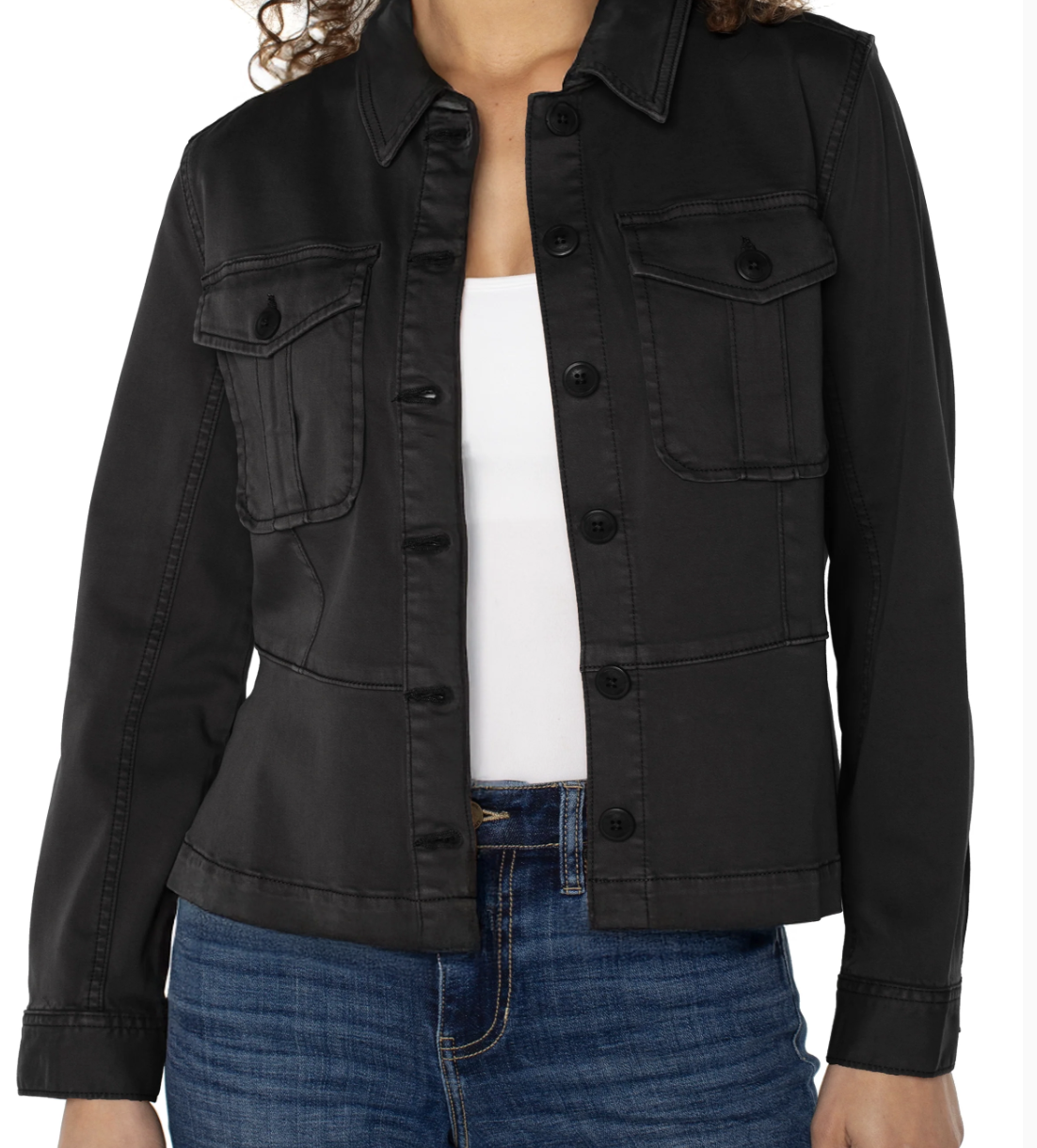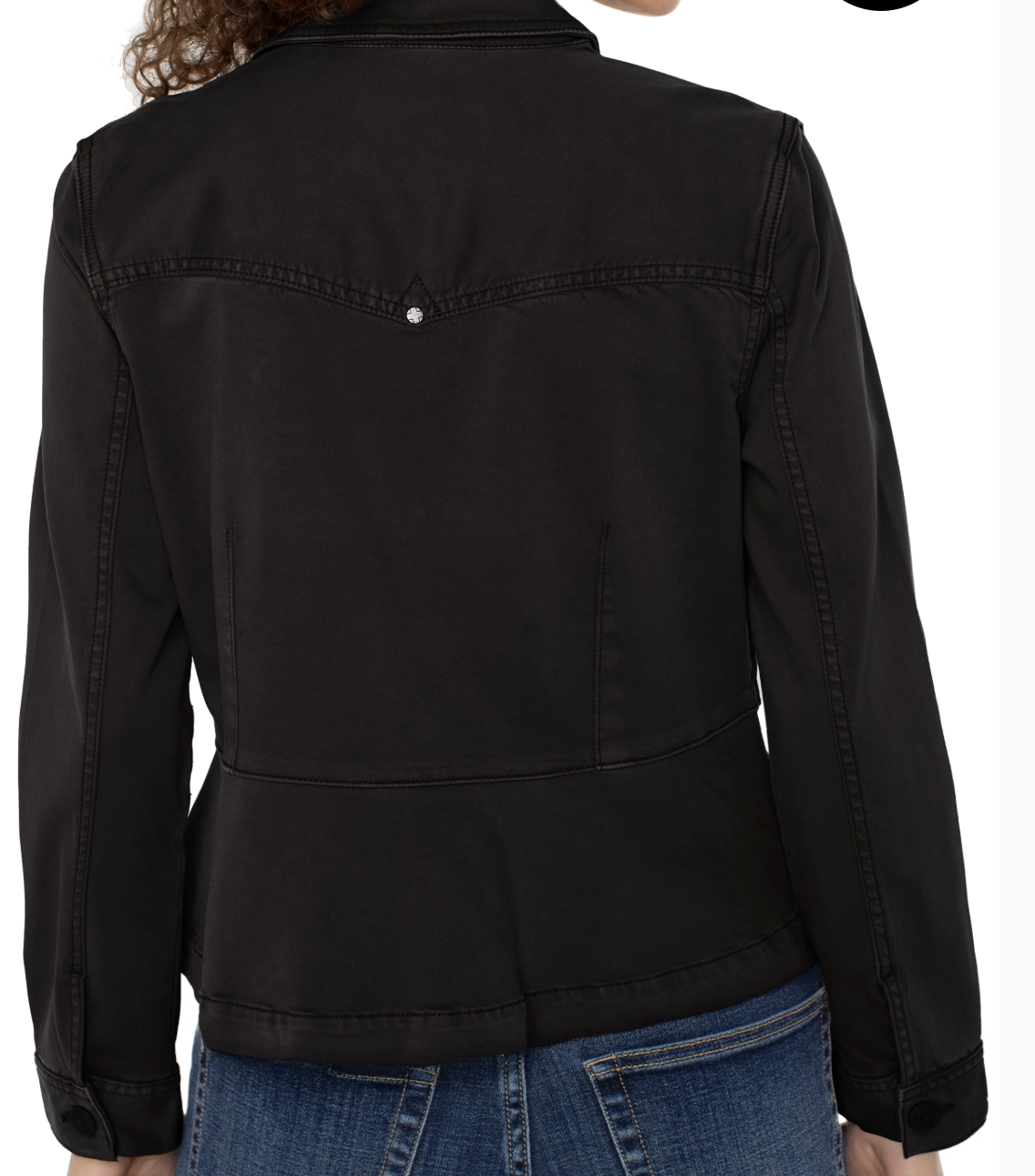 Update your wardrobe with this fabulous Peplum Jacket. This beautifully jacket is made with our premium soft stretch twill fabric. A touch of flirtiness mixed with edge gives you styling versatility!