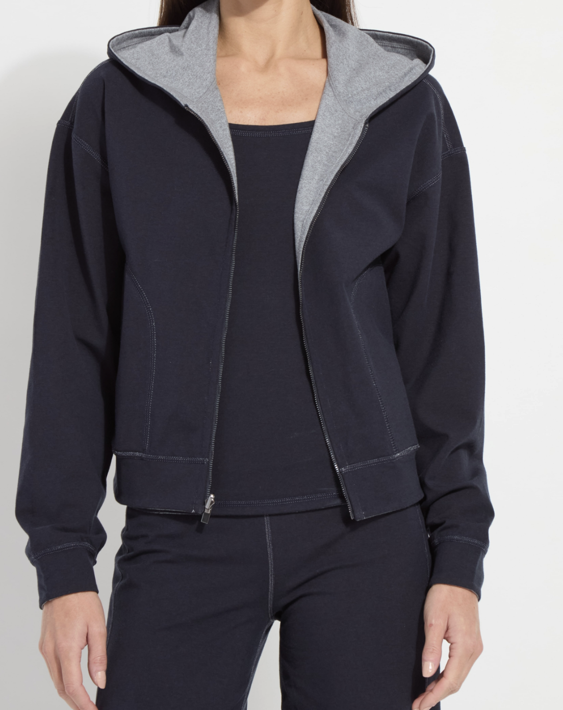 Two looks, one effortlessly cool essential. The Jovie Reversible Hoodie in Navy and Gray Melange delivers the perfect blend of comfort, versatility, and modern style. Crafted from a soft, mid-weight knit, this hoodie offers a cozy feel with a clean, structured silhouette that flatters every shape.