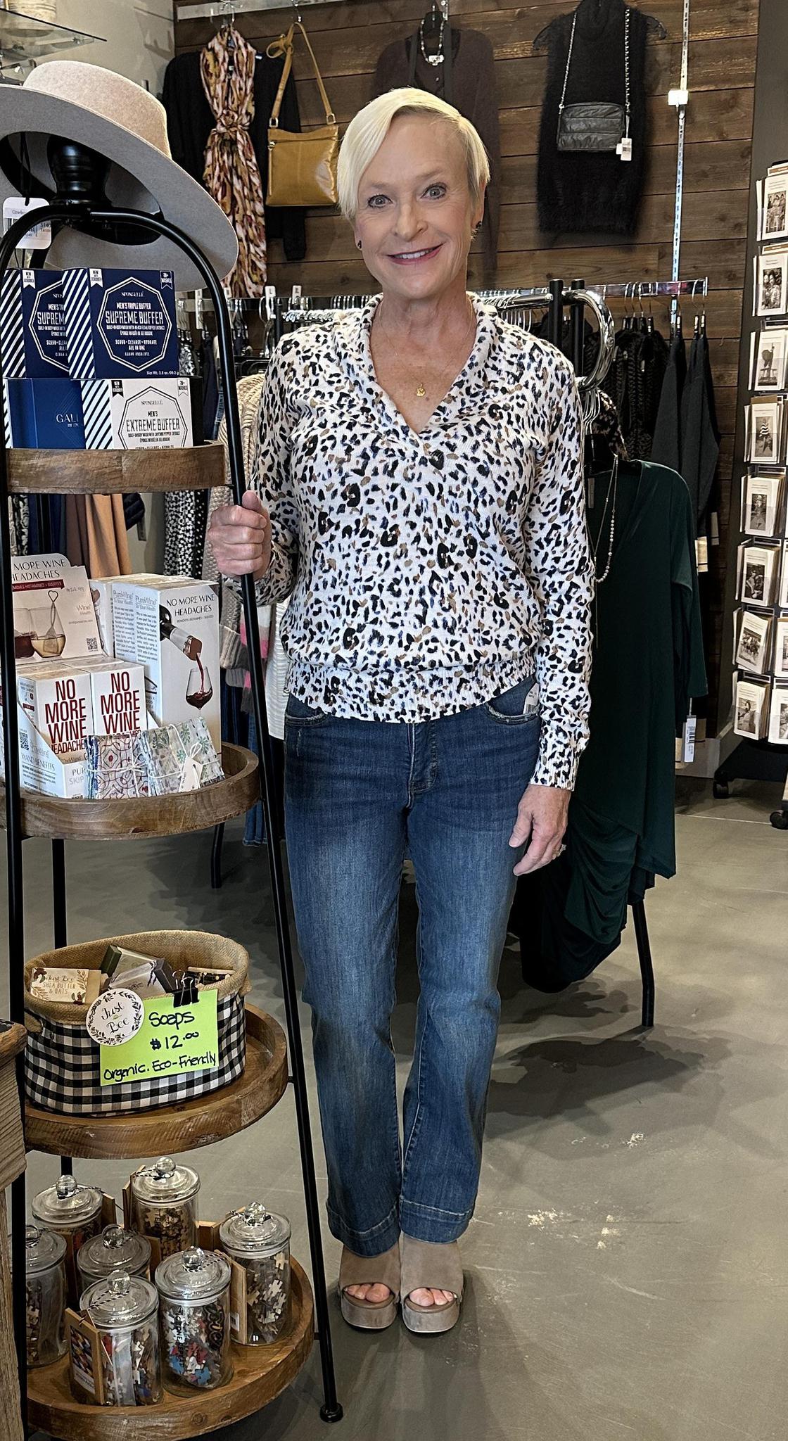 Femme Cheetah Sweater is a chic statement piece that blends bold style with everyday comfort. Designed with a flattering open neckline and a relaxed silhouette, this sweater features an allover cheetah-inspired print in neutral tones with subtle pops of color. Ribbed cuffs and hem add a polished finish, making it easy to pair with denim, trousers, or skirts for a versatile look that transitions seamlessly from day to night.