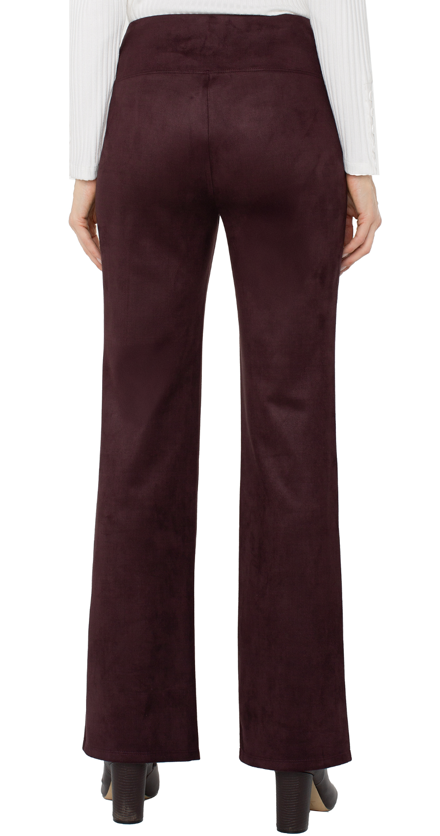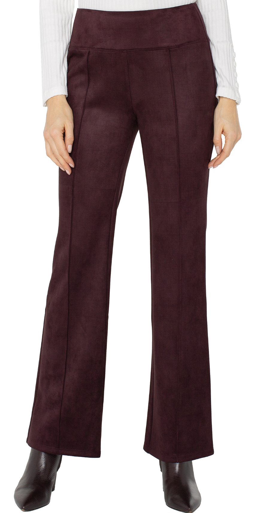 Full-length faux suede flare pants featuring front pintuck detailing for a sleek, elongating effect. Designed with a smooth pull-on waistband for a flattering fit and all-day comfort. The soft, pearl-toned suede texture adds a touch of sophistication, making these pants perfect for both casual and dressy occasions.