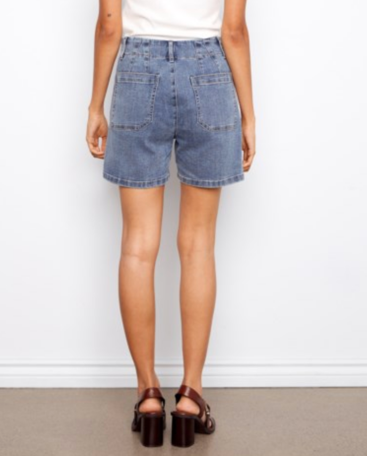 Classic style meets everyday comfort in these Stretch Denim Shorts With Patch Pockets. Crafted from soft, stretchy denim, they offer a flattering high-rise fit that moves with ease while maintaining a structured silhouette. The front patch pockets add a touch of vintage-inspired charm and practical functionality, perfect for casual days on the go.