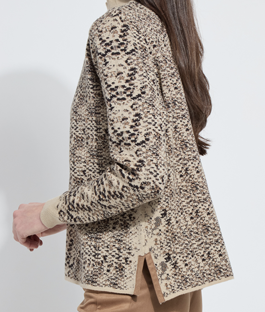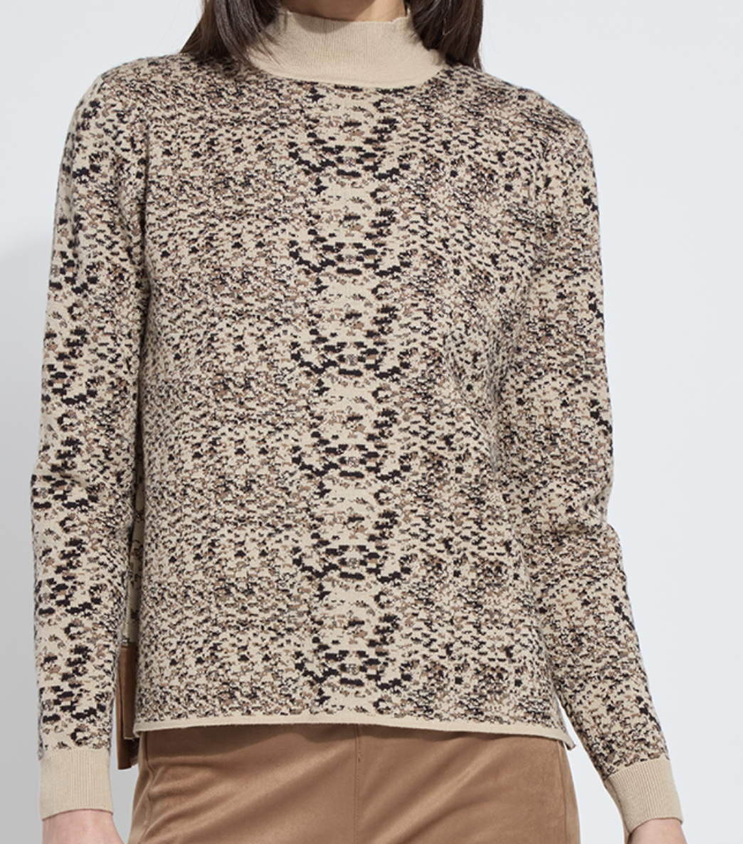Declan jacquard pattern lends rich texture and dimension to this soft, cozy sweater. Designed with a ribbed mock neck and relaxed fit, it offers both comfort and elevated style, perfect for layering or wearing on its own.