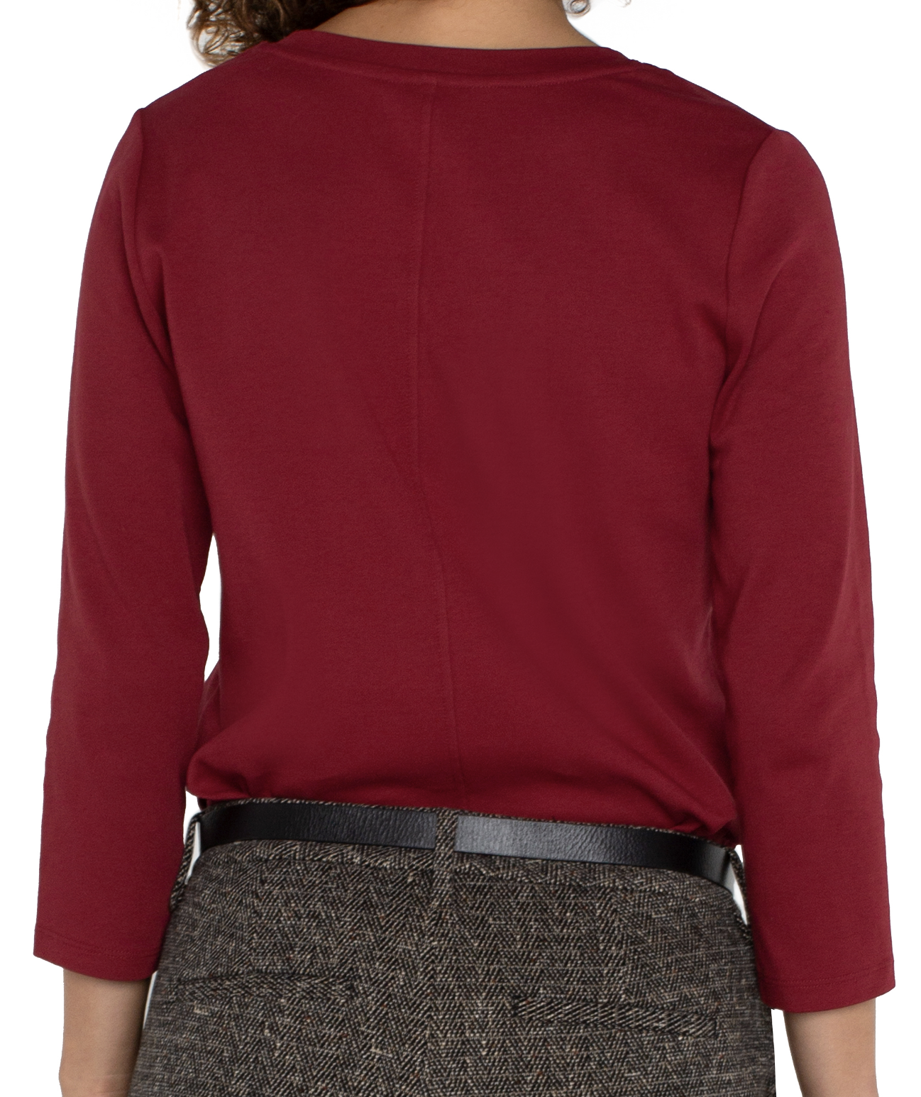 A timeless essential with a refined twist, this 3/4 sleeve scoop neck t-shirt in pinot noir adds effortless sophistication to any wardrobe. Crafted from soft, breathable fabric, it offers a flattering fit that moves comfortably throughout the day. The rich pinot noir hue brings depth and elegance, making it perfect for both casual and polished looks.